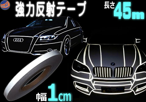 反射テープ (銀) 1cm 【商品一覧】 長さ45m 幅10mm リフレクトラインテープ シルバー 夜間 リフレクター シート デコライン 強力ステッカー シール 防水 内装 外装 曲面 ストライプ 高反射 リフレクトステッカー 高輝度 光るテープ 夜 屋外 車 自動車 車用 バイク 自転車